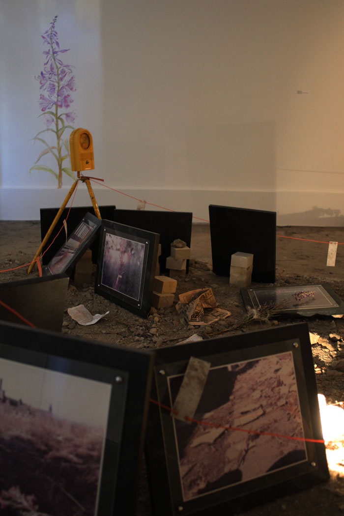 On visiting the sites of the murders of the 13 women in 1981, a tribute of Rosebay Willowherb was placed and a photograph taken to form the basis of the 13 tablets displayed within the installation, geographically arranged to define the Campo Santo.