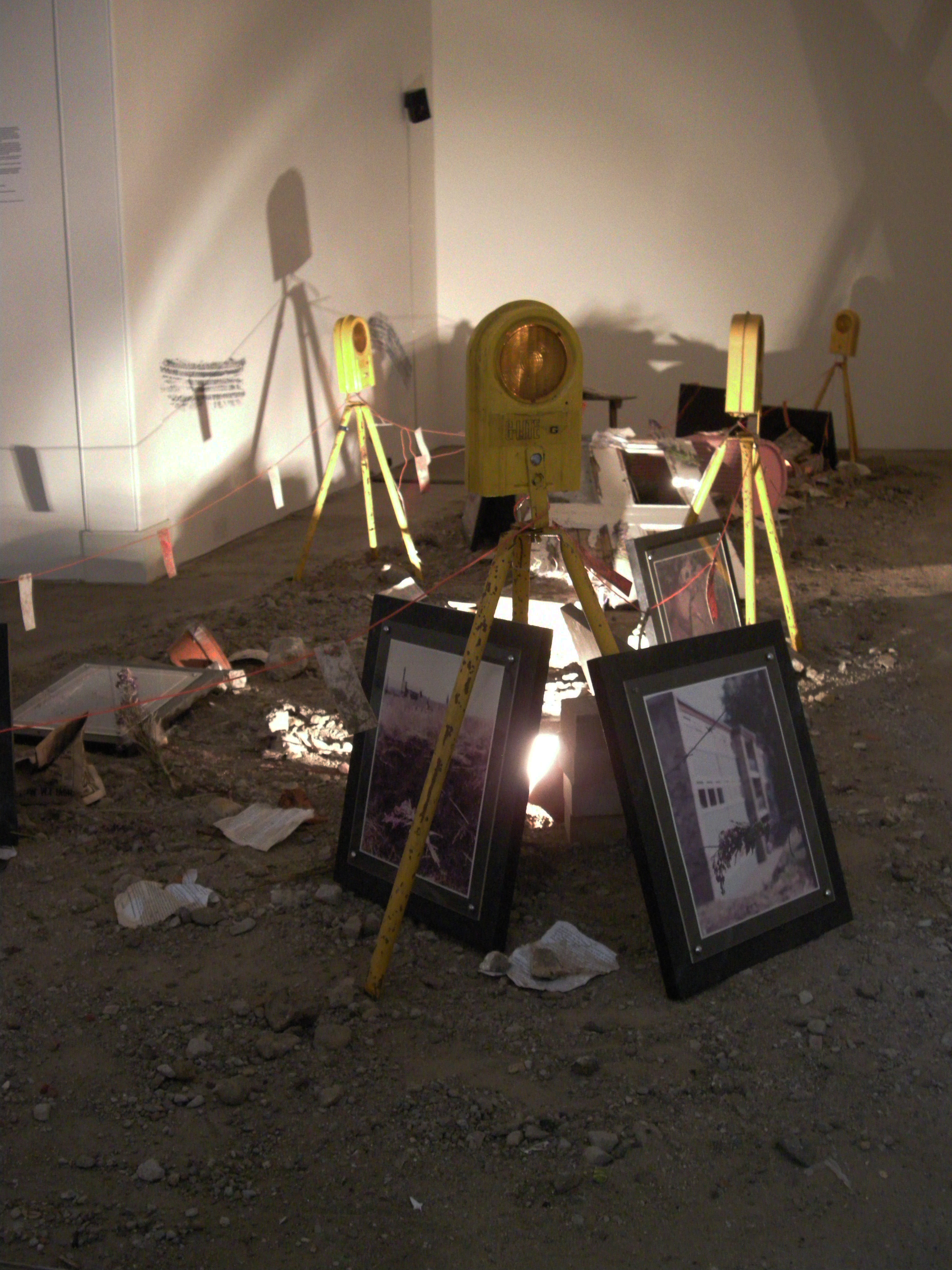 On visiting the sites of the murders of the 13 women in 1981, a tribute of Rosebay Willowherb was placed and a photograph taken to form the basis of the 13 tablets displayed within the installation, geographically arranged to define the Campo Santo.