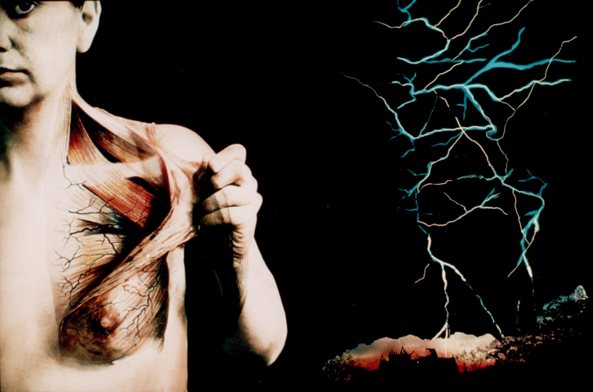 “In 1982, the earlier work came to life as an expression of a general fear of mortality. It portrays an exposed breast, stripped of its external flesh, set in a threatening landscape. At the time, there was no consciously intended reference to a particular disease. It was simply a study of the body in its conflicting dilemma of beauty and strength, horror and fragility.”